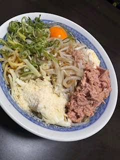 あざっす田中です! 本日の25歳独身男性のお昼ご飯です😆 まぜそば作りました😊 家に肉はあったのですが炒めるのがめんどくさかったので 代わりにツナ入れました とりあえずそれっぽい具材のせて混ぜれば だいたい美味しいです 😆 麺も4玉入で300円くらいだった気がする 安くていっぱい食べれるからオススメ😆 るいす。
