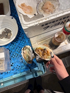 この間大洗に行って、牡蠣食べてきた〜🥺 美味しかった、、 牡蠣だーいすき♡ 今日も出勤してます🫡